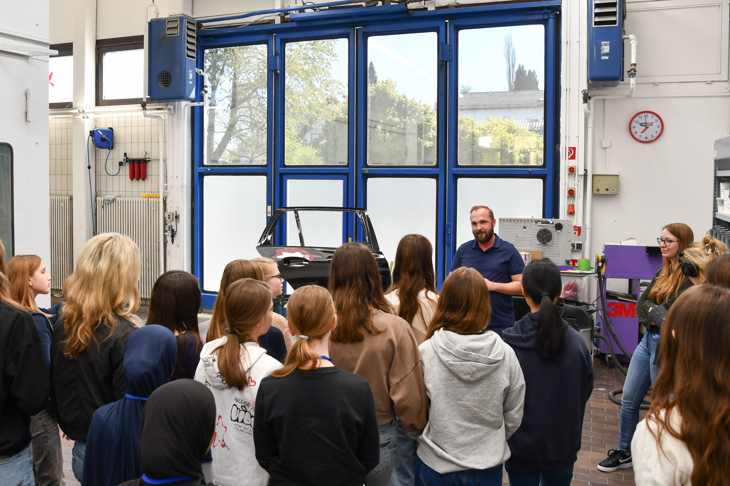 Neugier trifft Know-how: Teilnehmerinnen des Girls´ Day 2026 lernen die Tätigkeiten eines Lackierers kennen.