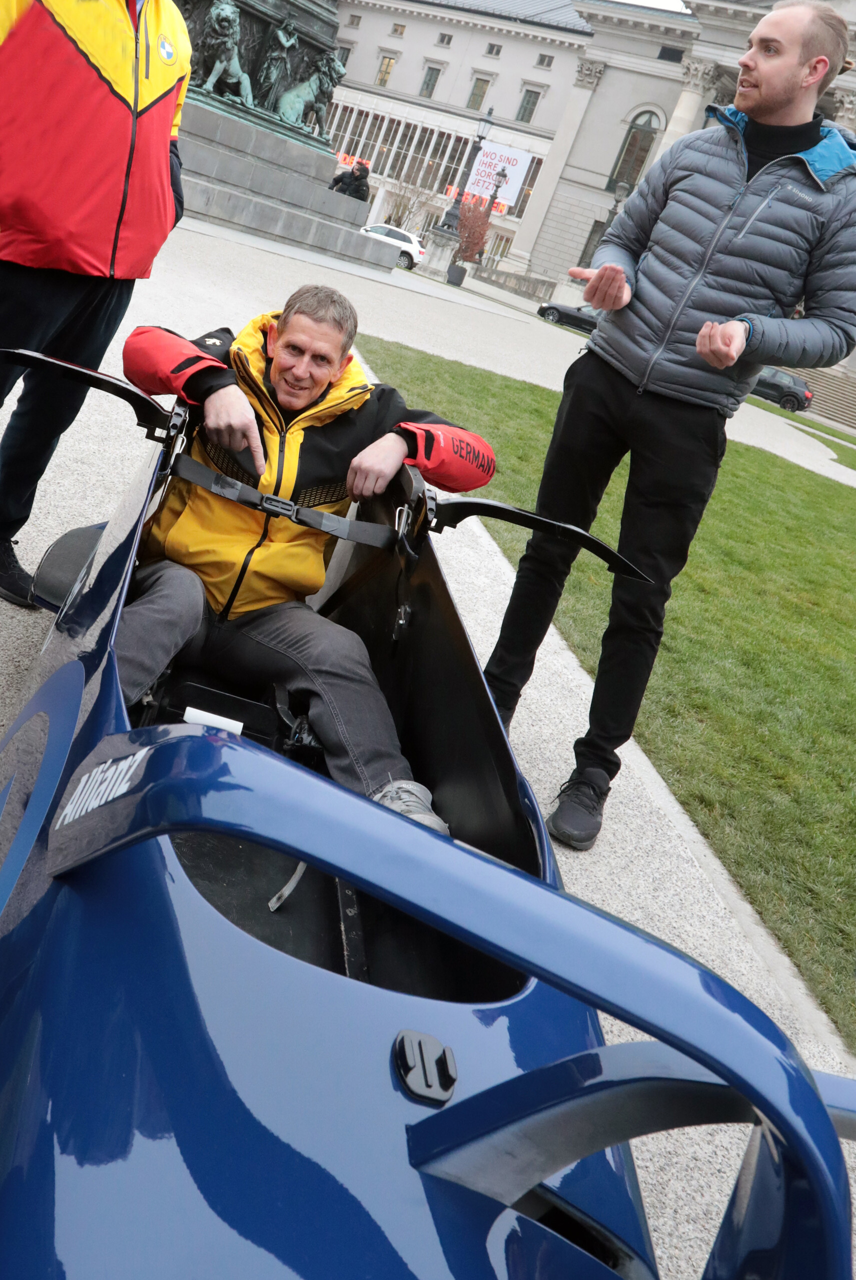 „Wir haben mit dem Bob-Team Illmann einige Konzepte am Eiskanal Altenberg testen können. Hierbei hat sich für den Bremser ein Gurtsystem als beste Lösung gezeigt, bei dem der Athlet in eine bereits geöffnete Gurtschlaufe springt und diese sich danach automatisch um sein Becken legt. Im Falle eines Sturzes kann der Sportler so im Schlitten gehalten werden. Damit können Eiskontakte und damit einhergehende Verletzungen wie beispielsweise an der Wirbelsäule oder auch nur Verbrennungen durch das Scheuern auf dem Eis bei hoher Geschwindigkeit vermieden werden“, sagt Markus Beischl, Ingenieur für Sportgeräte und Sportmaterialien im Allianz Zentrum für Technik (AZT).