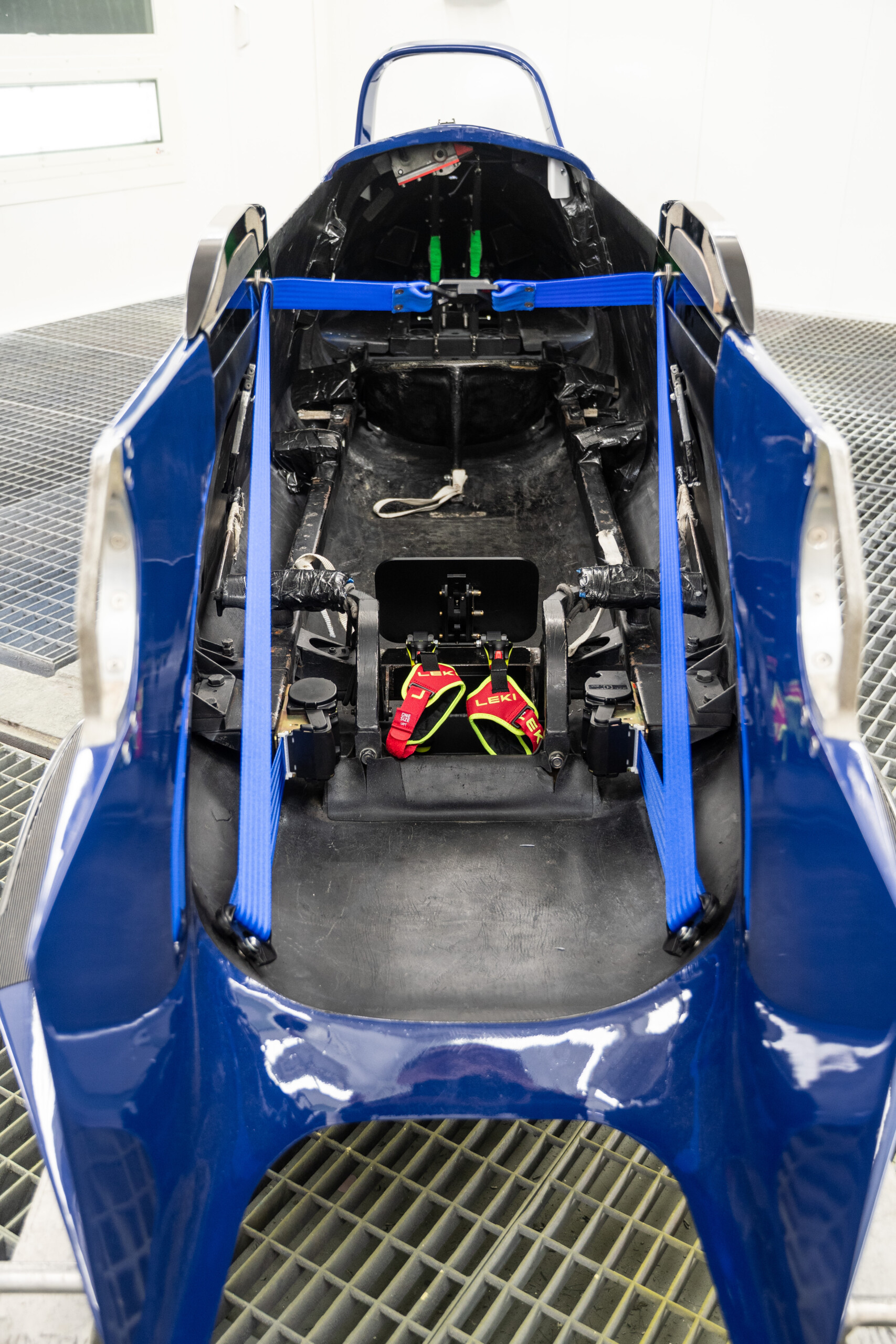 Der Pilot ist aufgrund seiner Sitzposition vor dem Herausfallen aus dem Schlitten ausreichend gesichert.